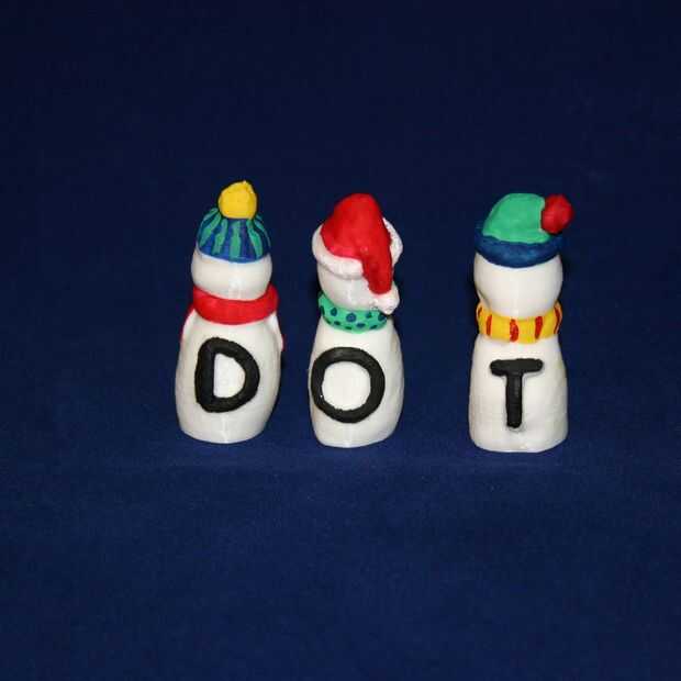 Los muñecos de nieve fueron pintados para que las letras se pueden ver desde la distancia.