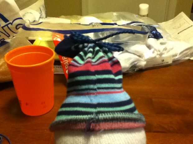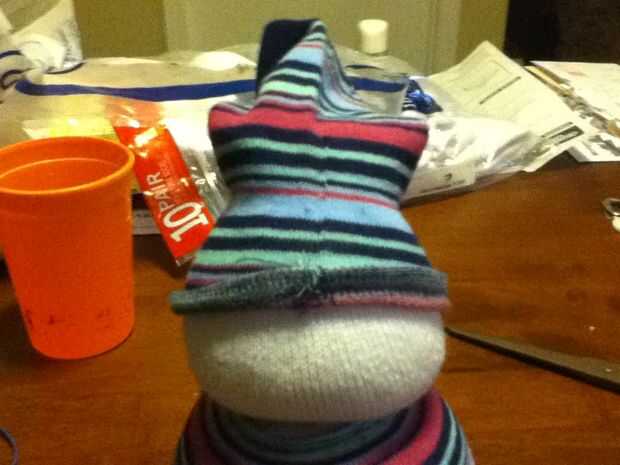 4. ahora utilice la parte del tobillo como un sombrero, asegúrese de que el elemento elástico es para arriba en la parte superior...