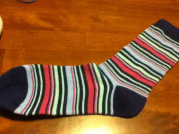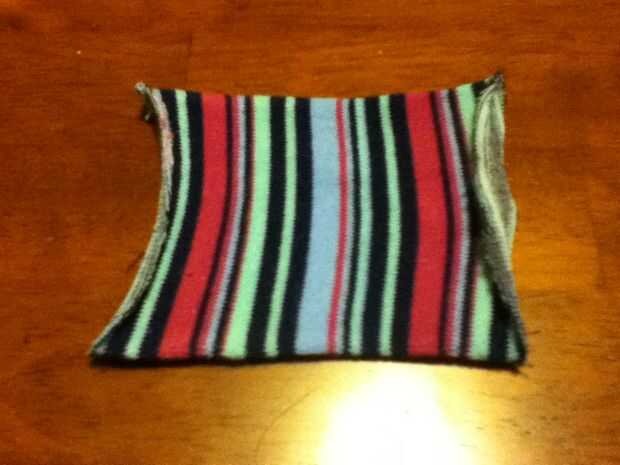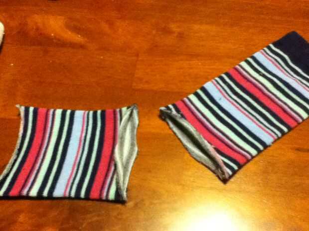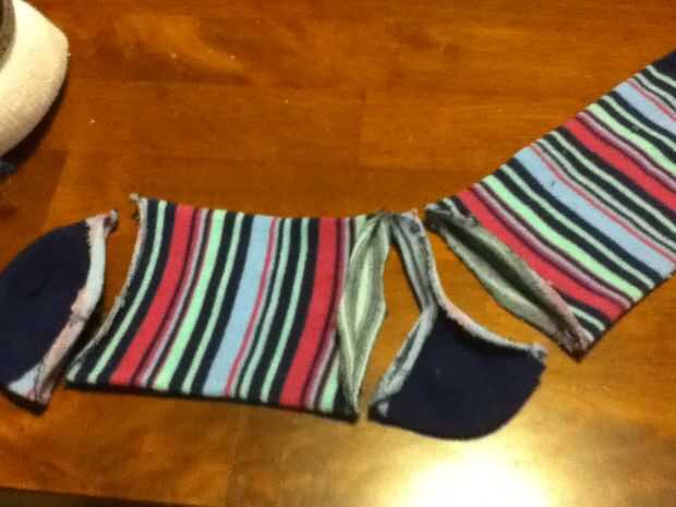 1. Tome su calcetín decorativo y corte en pedazos como el mío en la figura 2.