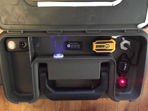 Potencia: Fui hacia adelante y hacia atrás en este caso y finalmente se estableció en una batería de plomo sellada. Específicamente esta una http://www.amazon.com/gp/product/B001XV8P0C/ref=oh...