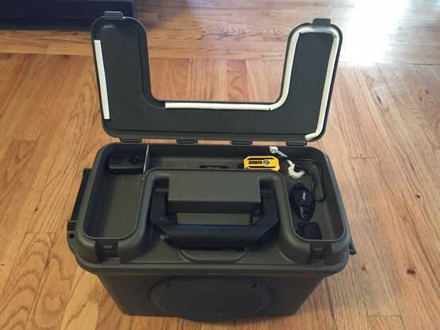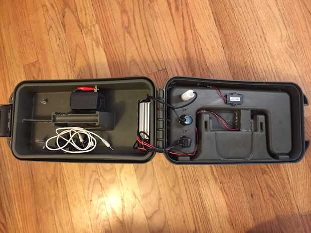 Recinto: por lo que comencé tratando de encontrar el mejor recinto. Quería que al menos resistente al agua, por lo que he buscado para cajas de agua firmemente que eran bastante grandes pero quedó vacío. Finalmente se estableció en una caja de munición de plástico. He visto llamado Amo can, caja campo, caja de utilidad etc. etc.. Esta fue una de las pocas cosas que no comprar en línea. Lo tengo en un lugar llamado montaña del gander pero creo que los tamaños son muy cerca de la misma sin importar qué marca tienes. Este es el "tamaño medio. Es cerca de 8" de ancho que era perfecto para la mezcla que tengo (más en un momento). Es genial encontrar uno que tiene un compartimiento más pequeño en la parte superior donde puede poner controles y no tener que abrir la tapa grande cada vez que necesite llegar allí para ajustar el volumen o la de encendido/apagado.