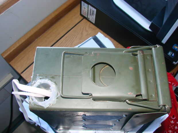 luego perforé los agujeros para el skrews mantenerlas en, también en este tiempo taladrar los agujeros para los cables asegúrese de que tiene todo visualizado en tu cabeza thuro y no perfore los orificios hasta que usted tome las piezas y hold em hasta la caja.