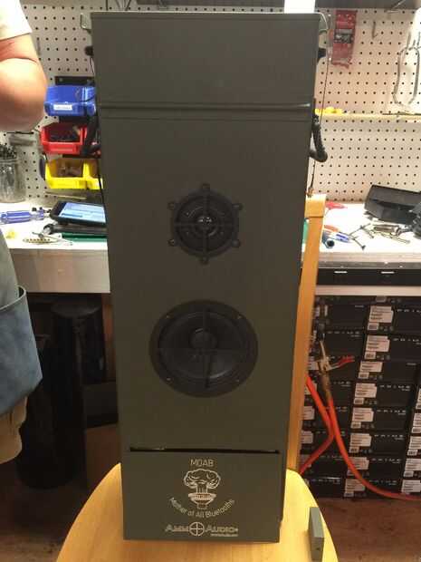 Esperamos te haya gustado nuestro poco instructable, y ojala te inspiró para tratar de construir una obra maestra épica como el MOAB. Este será un gran éxito en las partes interior y exterior, la playa, portones o campings y es portátil y resistente para tomar en el camino. La gama de bluetooth con una antena omnidireccional de 2,4 ghZ externa simple es enorme, el más largo que hemos visto aquí en los laboratorios 6 Compruebe! ¿Y el sonido? Poner esto contra cualquier cosa hacia fuera allí, incluso nuestro popular XLT AmmoCan! Le advierto esto no es una barata, y el trabajo que entró en esto fue increíble. Afortunadamente, contamos con un grupo de chicos muy capaces aquí en los laboratorios que aman la música y aman construir cosas, over-the-top como la MOAB!