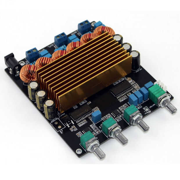 Hay un montón de amplificadores clase D ahi que encajaría bien en esta compilación. Porque hemos optado por agregar subs, elegimos este uno con theSTA508 + chips onboard de TC2000. Este amplificador es muy eficiente y está construida en la configuración 2.1, que le dará un montón de jugo a los subs. Es clasificado para 18-34v, que es una buena opción para nuestro SLA de 12v en serie.