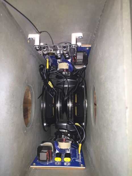 Ahora que hemos tenido el ammocan fabricado, podemos comenzar la fabricación de la cámara de sonido. Construimos nuestra caja con 1/4" y 1/2" MDF y enruta los bordes para que se resbale en la lata de mortero con facilidad. Edificio de la caja es una gran forma al hueso para arriba en sus habilidades para trabajar la madera pero es más allá del alcance de este Instructable. Te dejo detalles de hacerlo hasta los carpinteros por ahí, y hay un montón de foros y de Instructables que tratan con este arte. Usted necesita tener una cantidad razonable de precisión en este paso junto con las pinzas apropiadas se unen los lados correctamente y obtener un ajuste apretado. Sólo asegúrese de que usted haga algunas vias para cualquier sistema de cableado que terminan yendo con!