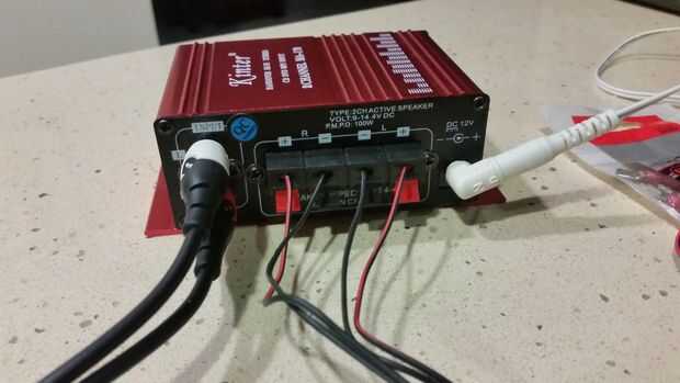 -dividir el cable desde el cable de alimentación del amplificador (cable blanco), corte y tira del alambre.