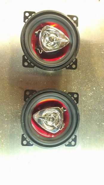 altavoces de 4 pulgadas: Se trata de personal informele. Consejo: nada más grande que 4" altavoces no se ajusta en un lado de 30. cal, si quieres más grandes altavoces utilizan un 50. poder de la munición de cal. He usado altavoces coaxiales porque eran baratos y altavoces coaxiales con mejor calidad en mi opinión de sonido.