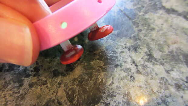 Así que, básicamente, cortar dos formas redondas del mismo tamaño de la tarjeta de crédito y caliente pegamento dos barras de plástico sobre ellos en los mismos puntos. Entonces, no dude en ir salvaje y esculpir cualquier diseño de pies desea. Acabo de ir para un look básico. Esculpió una tapa redonda sobre la tarjeta, y con dos fósforos finos grabado juntos para hacer el guión.