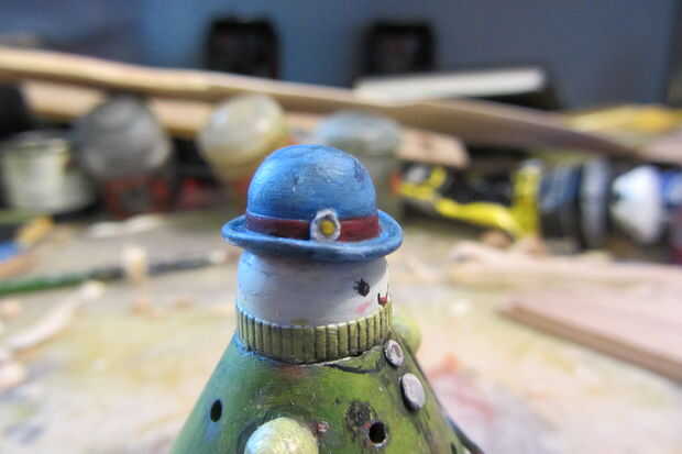 Ahora, la flor es mucho más simple. He esculpido una pequeña forma con la masilla, redonda y simplemente pintado de amarillo y blanco para dar la impresión de la flor.
