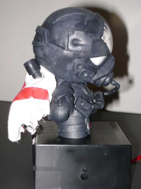 esta pieza fue DLi$ h primer intento trabajar con sculpey en sus juguetes. Buscando una nueva forma de manipular el medio 3D del juguete de encargo, el KidRobot Munny proporciona la plataforma ideal para realizar un funcionamiento en seco en el. Este
