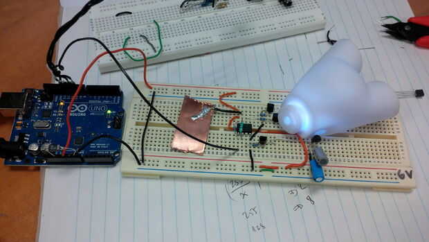 Una vez que estaba contento con el código de Arduino, simplemente cambiaron las definiciones de pin para que coincidan con el ATTINY, programar el IC con el Arduino (ver enlace: http://hlt.media.mit.edu/?p=1695)y vuelva a colocar el ATTINY en mi protoboard.