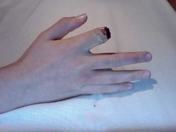 Dedos sangrientos cortados