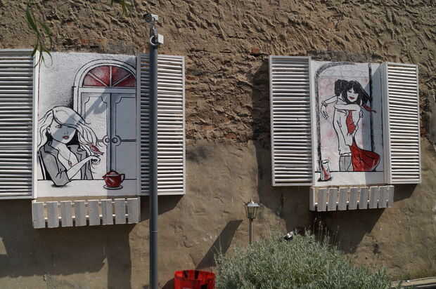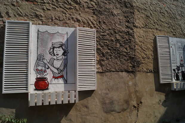 Ciudad de S.Alt es un mural para el centro de Syracuse que se celebra simultáneamente el pasado industrial de Siracusa y su estado actual como un centro artístico. A primera vista, la imagen es histórica, que representa a un centro de distribución de