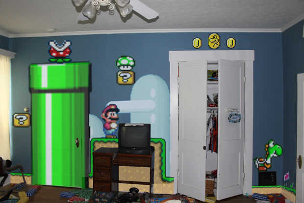 Este paso también es importante para pasos posteriores. Usted querrá tomar algunas imágenes de calidad decente de la zona que vas a pintar. Trate de llevarlos como recto como sea posible. También, puede que desee limpiar la sala en primer lugar, como se puede ver en mis fotos, no hice! Ahora, encontrar una buena imagen de lo que usted quiere girar a la sala a. Personalmente he usado un emulador de SNES en mi PC y tomó imágenes de las características que yo quería en la habitación.