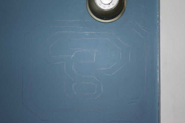 Este paso fue clave para mi proyecto.  Yo soy realmente no que artística y mi pintura a mano alzada es sólo se rieron.  Si usted es un genio del arte, supongo que se puede omitir.  Se encuentra un proyector o pedir prestado uno a alguien o trabajo o donde usted puede conseguir uno.  Luego carga la imagen de la plantilla que creó anteriormente para un ordenador portátil.  Ahora lo mejor puede, alinee el proyector a la pared que está pintando y escala de la imagen al tamaño que desee.  Deberá mover el proyector alrededor de diseño el diseño del conjunto.  Alternativa de mover el proyector y moviendo la imagen en la computadora portátil para obtener toda la zona cubren.  Pintura sobre la imagen probablemente no es viable si no tienes el proyector.  Así que usando un lápiz ligeramente trazar el contorno de todo a su pared.  No tienes que ser perfecto aquí pero cuanto más cerca que estás más tiempo que ahorras más tarde.  Tuve un buen poco de limpieza que hacer en mis imágenes mientras pinta como usted probablemente puede ver en algunas de las fotos.  Si su cuidado, la pintura debe cubrir la mayoría de las marcas de lápiz.