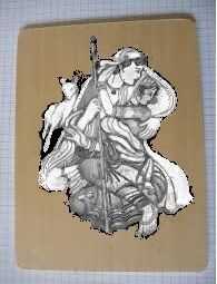 Primero imprimir un cuadro tan grande como quieras. En el caso de la imagen es demasiado grande imprime en las secciones. Pegar las secciones para obtener la imagen completa en una sola pieza. Cortar la imagen y con modge podge pegar a la madera prensada. Ejecute modpodge sobre la foto, así que establece en el pozo. Una espátula o una vieja tarjeta de crédito hará un buen trabajo. Inicialmente me había pegado la imagen completa como lo es con el fondo negro pensando que de todos modos yo se ser pegando negro en él. Sin embargo he aprendido que es mejor recortar prolijamente y lo pegan tal que crea más textura y profundidad y los gránulos se adhieren mejor a la placa dura que el papel así que había que sentarse a raspar hacia fuera y el fondo de la reanudación. A continuación con un 3D liner circulan por los bordes y contornos en la imagen. Elegí un trazador de líneas 3D color bronce como resalta las figuras. Pintar el interior, utilizando técnicas de sombreado, si es necesario. Rociaron algunos brillo demasiado para obtener los adornos para destacar.