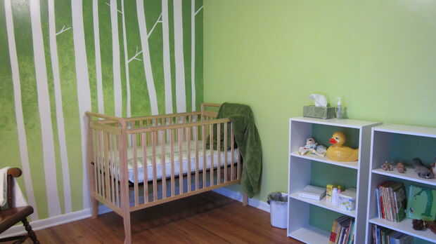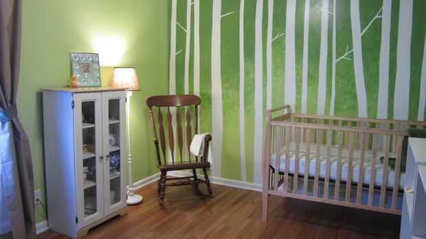Cuando nos mudamos a nuestra nueva casa, uno de los primeros proyectos que emprendimos fue armar un vivero para nuestro primer bebé, que sería llegar en sólo unos meses. Decidimos ir el tema forestal. La mayor parte de esto fue un mural de pared grande que estaba compuesto por siluetas de árbol. Aquí es un tutorial rápido de cómo lo hicimos.