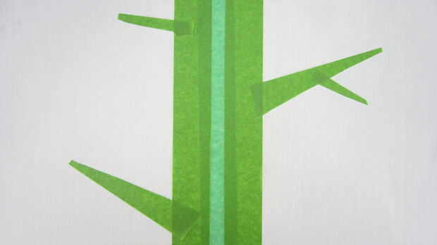 Ahora es necesario poner cinta sobre cada lugar donde los árboles. Pensar como los árboles con la cinta de plano. Desea utilizar cinta de rana en todos los bordes para mantenerlos limpios. Pero los interiores de los árboles pueden ser cinta de pintor regular si quieres ahorrar algo de dinero.