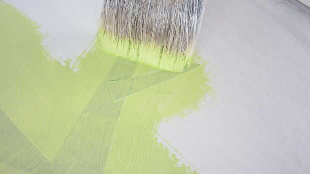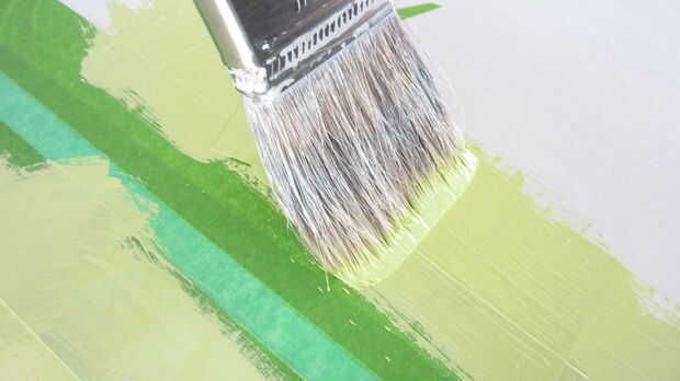 Ahora es necesario aplicar la pintura verde clara sobre toda la pared. Seguir adelante y pintar sobre las zonas con cinta. Que esta capa completamente seca antes de pasar al siguiente paso.