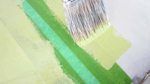Paso opcional: Si no tienes una buena cinta selladora como cinta de rana, usted todavía puede conseguir una línea limpia por primera pintura sobre los bordes de la cinta con la misma pintura blanca que utiliza para la capa base. Si hay espacios, la pintura blanca rellenar y sellarlas. Entonces al aplicar más capas, la pintura de color no será capaces de escurrirse en.
