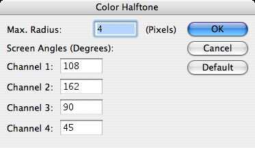 Duplicar la capa de imagen, a continuación, aplicar un filtro Semitono de Color a la nueva capa (filtro > Pixelizar > Semitono de Color) fui con un radio máximo de 4, pero se puede ir más alto si usted quiere más distorsión. Entonces a bajar la opacidad de esa capa hasta que estás satisfecho. Fui con alrededor del 30%, pero una vez que estés feliz con cómo se ve, fusionar las capas.