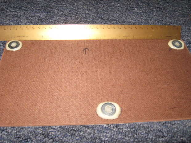 Una vez que tenga los lados hechos, usted puede marcar a través de cada línea para que realmente sea las chinchetas. Medir la distancia entre la parte superior de las arandelas superiores, se trata de la distancia que te marca. Para mí era alrededor 11", así que a partir del extremo de la línea superior, mide 11", entonces 1" por el espacio, y luego otro 11" y 1", etc....