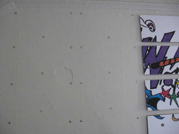 Ahora solo presione una chincheta en cada punto ha marcado, luego limpie la tiza la pared con un paño seco. Colocar un imán en cada lavadora y sujete los paneles a la pared.