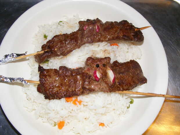 Hacer vampiro murciélago satay en un palillo con ingredientes ordinarios. Utensilios de plata recomiendan pero no necesario.