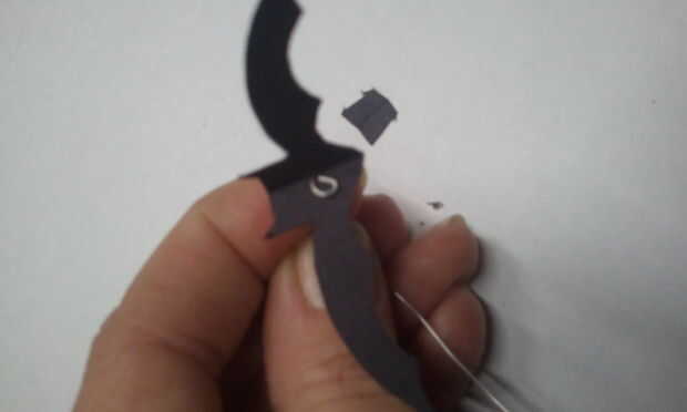 Meter el alambre a través de bat - conforman un enrollamiento sobre bat de tirar de un extremo - curva en rizo 90 grados - y al ras con rizo
