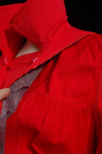 Frente frente a todo lo alrededor de la capa de apertura que se llevó a cabo en lugar con tachuelas de sastre.