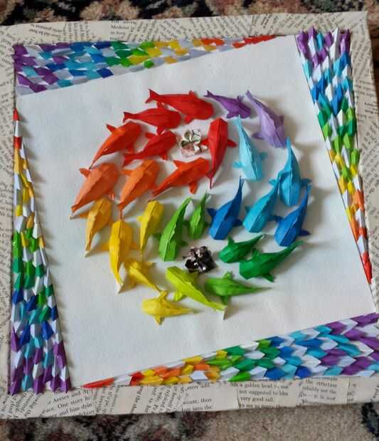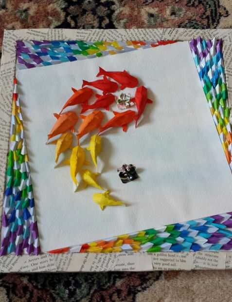 Mi amigo vi un colgante de pared de koi origami que gustó, pero la tienda de etsy que lo vendía tenía un precio de más de $1000. Por lo tanto, me puse a hacerlo para su cumpleaños/regalo de Navidad y después de incontables horas de doblar al caminar,