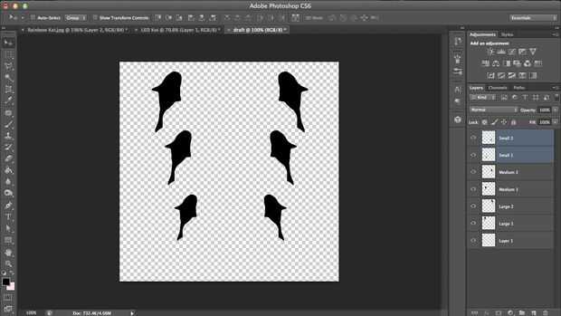 - Verás que tengo un volteado horizontalmente la columna de koi también. Terminé no usando esto para que no se preocupe por él (se suponía que las plantillas de la otra forma de yang de yin, pero me di cuenta de que los bancos es irrelevante.). Renombrar las capas para reflejar el tamaño (pequeño, mediano, grande) para que no se confunda. Como en un laboratorio (shoutout a los colegas científicos), exceso de etiquetado es mejor a largo plazo, por si acaso.