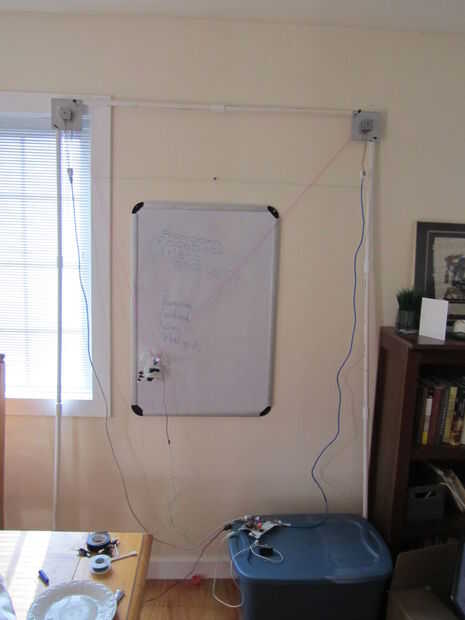 Usted puede dibujar directamente sobre la pared. Ya que estoy casada no me permiten hacerlo aunque mía tengo que dibujar en un tablero blanco montado en la pared;). El marco es portable por lo que fácilmente puede moverlo a otro lugar, enchúfelo e ir. Soporta múltiples fuentes (robadas del plugin Eggbot Hershey texto de Inkscape)