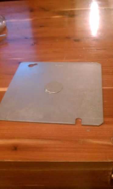 - Utilicé la pieza transparente de plástico que viene al comprar una pila de CDs. Algo de ese tamaño y plana debería funcionar. Claro es bueno porque se puede ver lo que está dibujando, pero no es necesario.