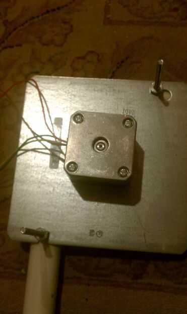 - Utilizo algunas portadas en blanco de la caja eléctrica. El agujero en medio de ellos ajusta el motor paso a paso perfectamente (después de que usted salte de la pieza de metal).