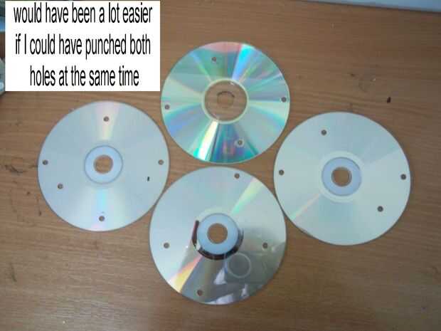Perforar agujeros en el disco: cada agujero tuvo que ser perforado por separado, así que tuve probs que más o menos enfrente de la otra, como puede verse en las fotos! Pero uno puede simplemente gire el disco un poco y vuelva a intentarlo. Sin duda un golpe doble sería mucho mejor, si uno podría arreglar los agujeros de la distancia adecuada.