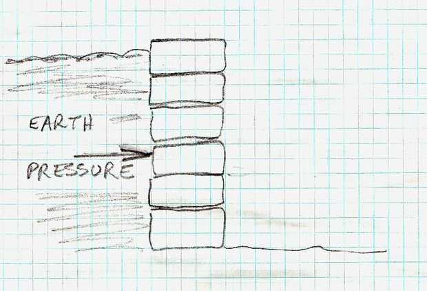 Si no es golpeado un muro de contención, que es si no lean en la tierra, entonces la presión de tierra empujará la pared encima. Echa un vistazo a los muros de contención como conducir alrededor y podrás ver muchos ejemplos de muros que caen sobre porque se construyeron como esta.