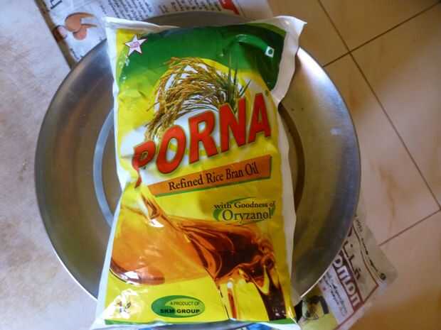 También necesita aproximadamente medio litro de cualquier aceite para freír. Aquí he utilizado el aceite de salvado de arroz refinado.