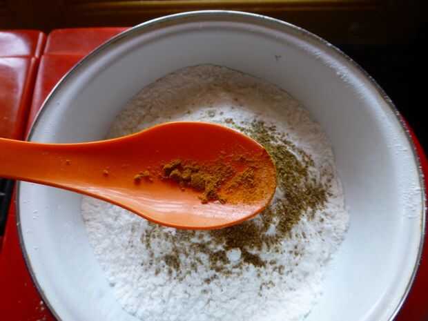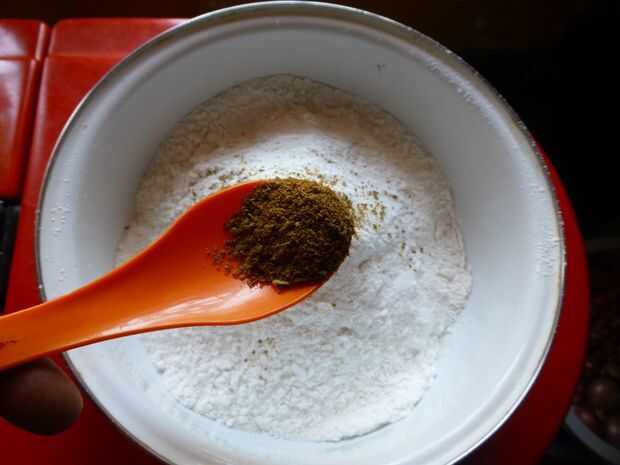Murukku: Giros de sabrosos y crujientes de harina de arroz (2 / 6 paso)