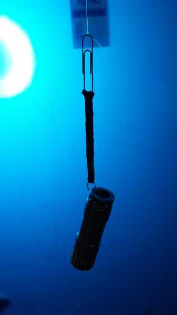 tomar a algún tipo de peso (Yo utilicé un flash de luz) y coloque al otro lado del clip de papel, este peso será mantener la línea recta mientras se gira.