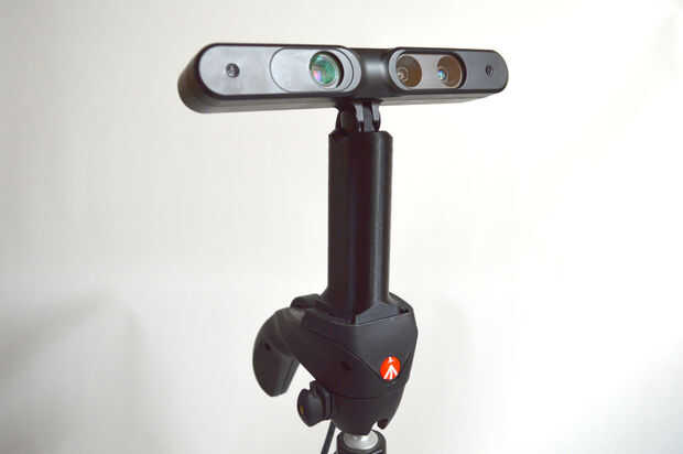 Si lo desea, puede descargar el mango que diseñé para mi scanner sobre un trípode Manfrotto aquí: http://www.thingiverse.com/thing:212185 T