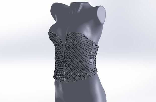 Fui para taladros de diamante cubierta del corsé de Muse. Una de las razones de que elegir esta forma es que puede ser impreso fácilmente sin la ayuda de la impresora 3D MakerBot Replicator 2.