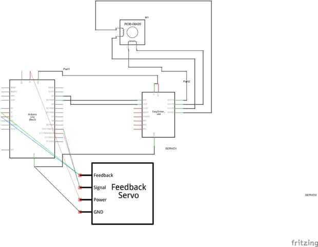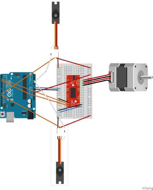 1. una vez que la estructura física en su lugar, siga los diagramas de Fritzing para alambre correctamente su Arduino y motores.