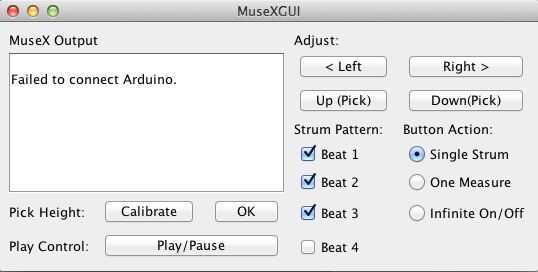 - Ahora estás listo para jugar! Basta con conectar tu Arduino USB y ejecute el archivo MuseX.jar. Verá una interfaz como la imagen de arriba.