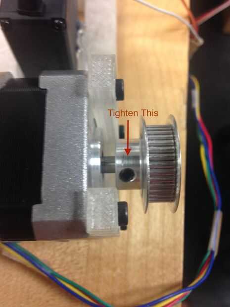 1. Fijar la polea de la varilla giratoria del motor paso a paso; hay un tornillo de apriete de la polea de la misma (ver la primera imagen).