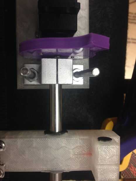 1. Deslice el 8 mm del eje de la guía de carril linear del eje ya sea la parte activa o pasiva. Apriete el tornillo en el lado de la guía de eje con una pequeña llave Allen.