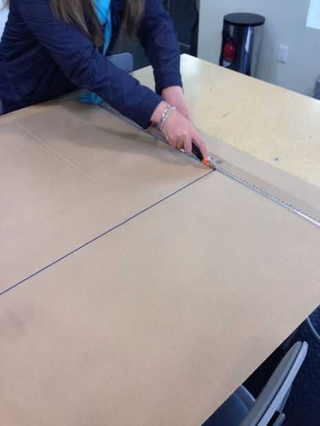 Medimos un cartón de 60 cm x 100 cm, qué es el área de trabajo de la cortadora láser. Marcamos las medidas y