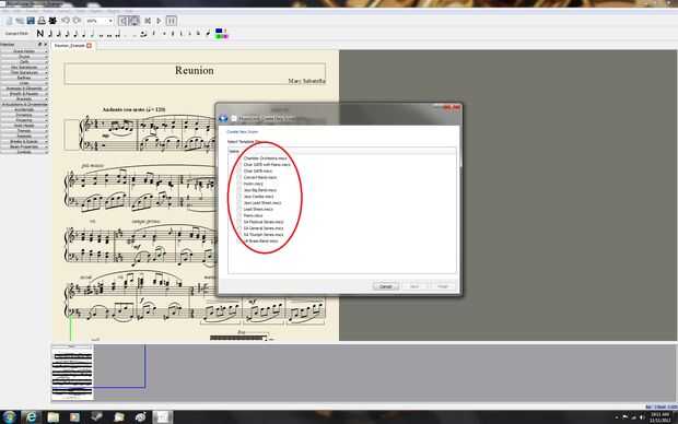 Si clikced usted "crea una puntuación de plantilla" en la primera pantalla del asistente, entonces esta ventana aparecerá cuando usted haga clic en siguiente. Hay un montón de diferentes tipos de bandas que pueden crear partituras, por ejemplo Jazz Combo, Orquesta de cámara o banda de concierto. Si hace clic en cualquiera de estos, cuenta con todos los instrumentos en este tipo de bandas aparecerá cuando termine el Asistente para la puntuación. El estilo del texto también cambia, por ejemplo, si hace clic en Jazz Big Band. Personalmente no me gusta crear a partir de una plantilla, porque no hay que muchas opciones y me gusta personalizar mis propios instrumentos. Pero si va a crear una partitura con muchos instrumentos, será más fácil hacer esto porque una partitura con muchos instrumentos necesitan ser formateados para que todos cupieran en la pantalla. Me meteré en formato en un tutorial mucho más adelante. Pero por ahora, voy a entrar en cfreating una puntuación de cero.