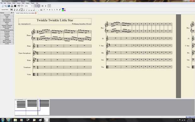 Para hacer su canción musical, cambiar el tono de las notas en el pentagrama. Puede ir chormatically arriba y abajo para cambiar el tono pulsando el arriba y abajo teclas de flecha. Para cambiar la octava de una barra o una nota, haga clic en él o resáltela y luego presione Control/Control-bajada. Para poner de relieve todas las medidas o las siguientes de una canción en un cierto personal del instrumento, haga clic en la medida que quieras, y orificio de Control y cambio. Ahora presione y mantenga pulsada la tecla de flecha derecha hasta llegar a la medida que desea \or hasta llegar al final. Puede hacer esto para varios instrumentos haciendo clic en una medida, pulsa shift, va abajo a que igual medida en el último instrumento usted quiere (destacados todos los inbetween) Mantenga control y shift y a la derecha del mismo modo. Esto ayuda si es copiar y pegar en otros pentagramas de instrumento. (Nota *** al copiar y pegar las medidas en otro personal de instrumento, la parte que transponer en música para dicho instrumento. Su tan fácil if no sabes componer para cada instrumento individual. ¡ PERO! La parte puede ser unas octavas por debajo de la que desea, especialmente si están convirtiendo de un instrumento de baja a un instrumento de alta. Usando la técnica clave de flecha ayuda a solucionar algunos de estos temas para componer para otros instrumentos también). Otra cosa es que usted puede Agregar sostenidos y planos normalmente por cliking en la nota y haciendo clic en el botón en la parte superior pero va lento. La manera de hacer mi entrada es entrada + teclas cromático para cambiar sostenidos y bemoles del ratón. Hay aquí ninguna imagen para mostrar lo que estoy hablando, pero voy a mostrar más música se escriben sobre el pentagrama de mi canción.
