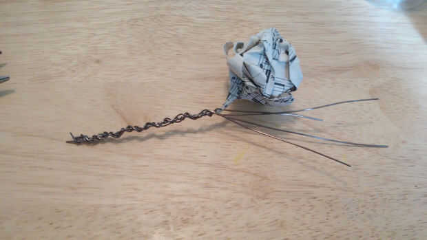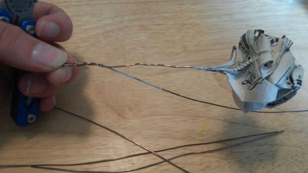 Nota: comience en la parte inferior del tallo y tuerza el alambre a la parte superior para que la mitad que no consigue torcida en el vástago está sentado cerca de la flor.